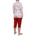 Kombinezon, piżama jednoczęściowa z zamkiem na plecach dla seniora rozmiar M krótkie rękawy, krótkie nogawki - polecamy na okres ciepły Kwiaty ecru