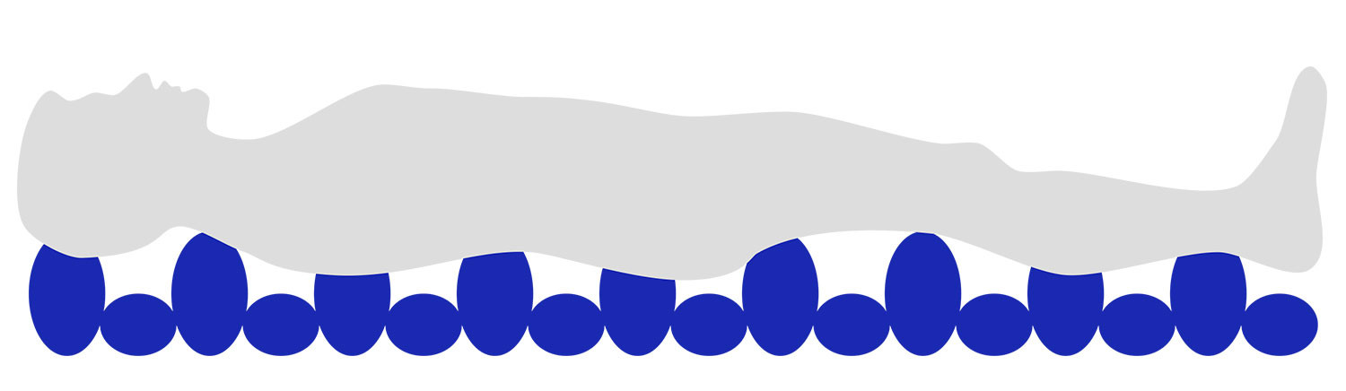 Technologia komór: Struktura komór w połączeniu z pompą Vircare zapewnia delikatny masaż dla osoby leżącej, co sprzyja przyspieszonej odbudowie naskórka i leczeniu odleżyn.