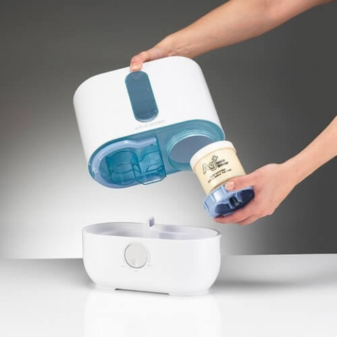 Wydajny kartridż do demineralizacji wody rozpyla pozbawioną osadu mgiełkę wodną, a elektroda Ionic Silver Stick (ISS) zapobiega namnażaniu się bakterii w wodzie, przez co wilgotne powietrze jest czyste i pozbawione brzydkich zapachów.