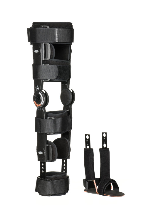 Posiada cztery taśmy stabilizujące samoprzyczepne i element stabilizujący stopę, wykonany z aluminium i pianki EVA. Ma lekką i otwartą konstrukcję, która zapobiega otarciom i odparzeniom skóry. Orteza posiada dwuszynową boczną stabilizację wykonaną ze stopów aluminium i łatwy w obsłudze monocentryczny zamek umożliwiający podwójne ograniczenie kąta zgięcia lub wyprostu.