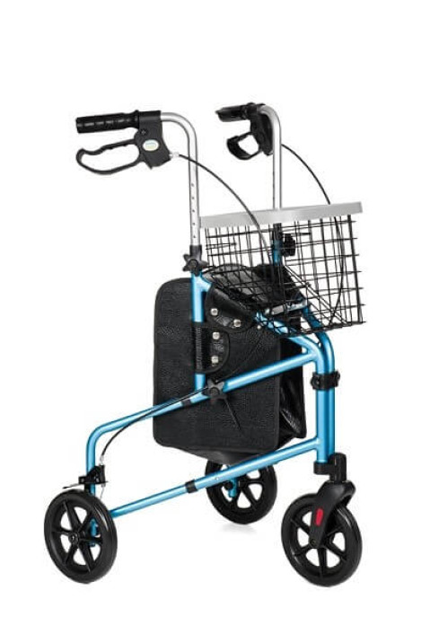 Składana podpórka trójkołowa, wyposażona w dwa stałe koła tylne z hamulcem i blokadą kół oraz jedno przednie koło obrotowe. Umożliwia łatwe poruszanie się po każdej powierzchni, wewnątrz i na zewnątrz budynku. Uchwyty anatomiczne wykonane z polietylenu, rama z aluminium.