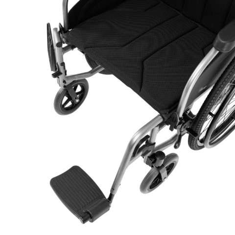 Profilowane, uchylne podłokietniki oraz zdejmowalne podnóżki ułatwiają przesiadanie się na łóżko, fotel czy toaletę. To rozwiązanie zwiększa komfort codziennego użytkowania i daje większą swobodę ruchu.